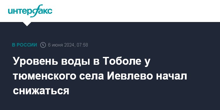 Москва. 6 июня. INTERFAX.RU - Впервые с начала паводка в реке Тобол, протекающей через село Иевлево Тюменской области, зафиксирован спад воды.