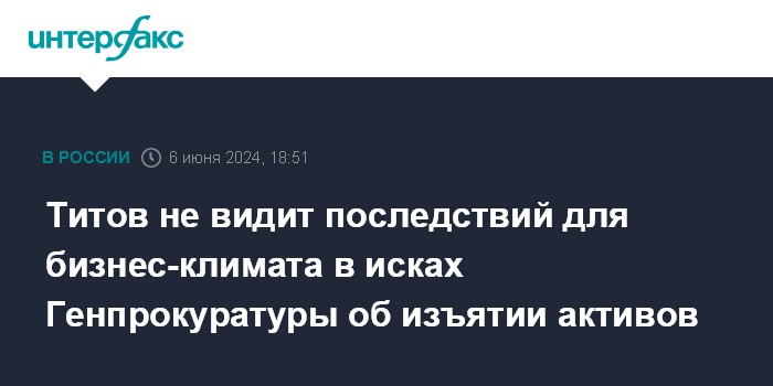 Титов не видит последствий для бизнес-климата в исках Генпрокуратуры об изъятии активов