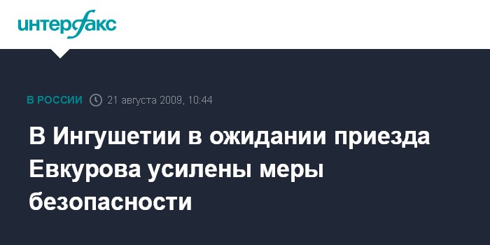Москва. 21 августа. INTERFAX.RU - В Ингушетии в связи с возвращением президента республики Юнус-Бека Евкурова, который в пятницу должен прилететь в аэропорт "Магас", усилены меры безопасности. Как сообщил агентству "Интерфакс" представитель МВД Ингушетии, в республике усилены меры безопасности, на всех магистралях и автодорогах работают усиленные мобильные посты, усилены стационарные посты. Все административные здания и объекты республики взяты под усиленную охрану. Кроме того, охраняются места больших скоплений людей, площади, рынки, торговые центры. Планируется, что после прилета главы республики в аэропорт "Магас" пройдет рабочее совещание с участием премьер-министра Ингушетии Рашида Гайсанова, сообщили в свою очередь агентству в правительстве республики, на котором будет обсуждаться общественно-политическая ситуация.
