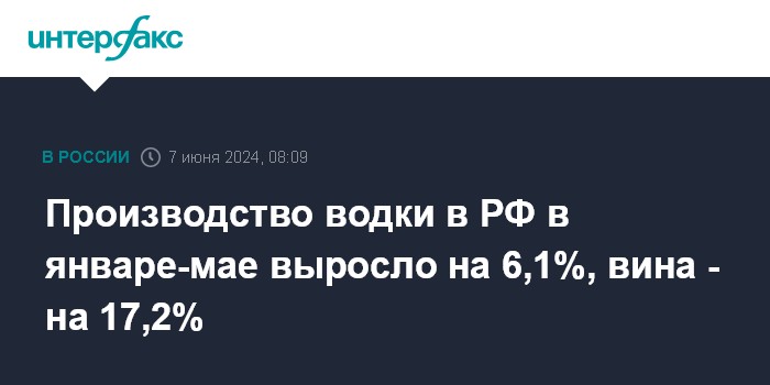 Производство водки в РФ в январе-мае выросло на 6,1%, вина - на 17,2%