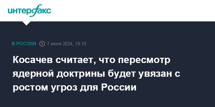 На вопрос, будет ли увязан пересмотр российской ядерной доктрины с ростом угроз для России, Косачев сказал: "Да, разумеется".