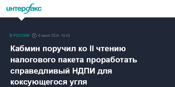 Москва. 8 июня. INTERFAX.RU - Минфину РФ вместе с заинтересованными органами власти предстоит до рассмотрения налогового пакета Госдумой во втором чтении дополнительно проработать вопрос "установления справедливого уровня" налога на добычу полезных ископаемых для коксующегося угля.
