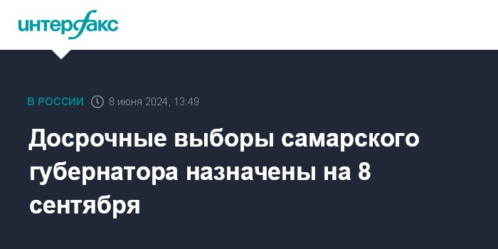 Досрочные выборы самарского губернатора назначены на 8 сентября