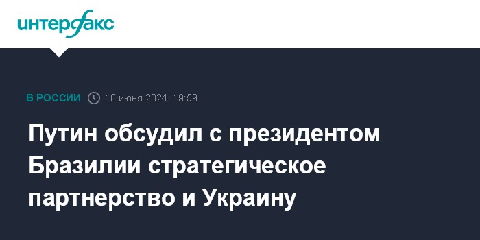 Путин обсудил с президентом Бразилии стратегическое партнерство и Украину