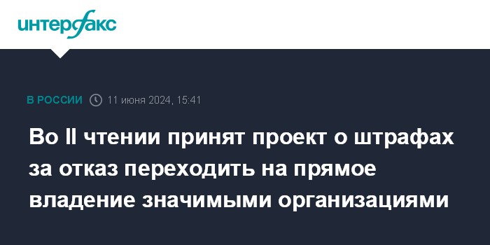 Во II чтении принят проект о штрафах за отказ переходить на прямое владение значимыми организациями