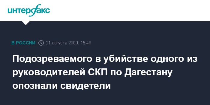 Москва. 21 августа. INTERFAX.RU - Установлен подозреваемый в убийстве в мае этого года руководителя отдела по особо важным делам следственного управления СКП РФ по Дагестану Сейфутдина Казиахмедова, сообщил "Интерфаксу" в пятницу официальный представитель СКП РФ Владимир Маркин.