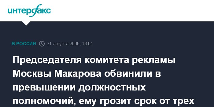 Председателя комитета рекламы Москвы Макарова обвинили в превышении должностных полномочий, ему грозит срок от трех до 10 лет