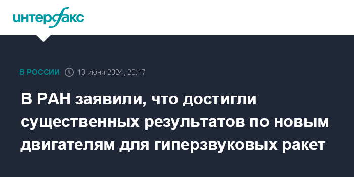 В РАН заявили, что достигли существенных результатов по новым двигателям для гиперзвуковых ракет