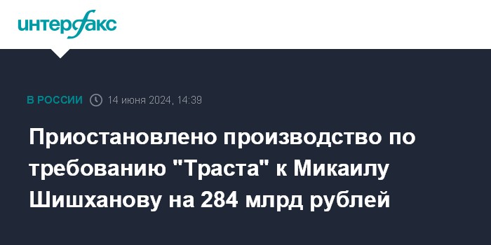 Приостановлено производство по требованию "Траста" к Микаилу Шишханову на 284 млрд рублей