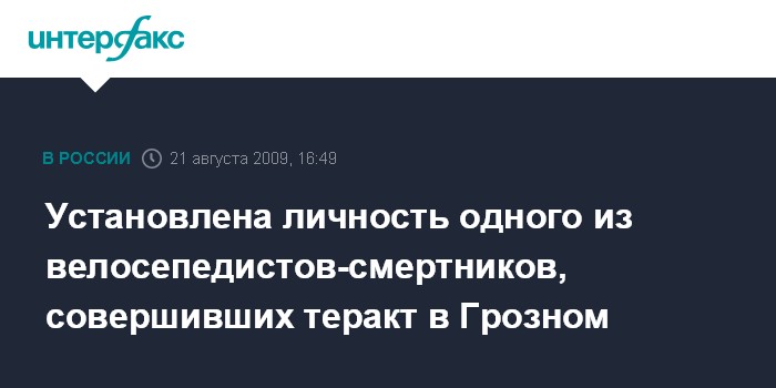 Москва. 21 августа. INTERFAX.RU - Один из двух терактов, которые произошли в пятницу в Грозном, совершил молодой житель чеченского города Аргун.