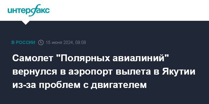 Самолет "Полярных авиалиний" вернулся в аэропорт вылета в Якутии из-за проблем с двигателем