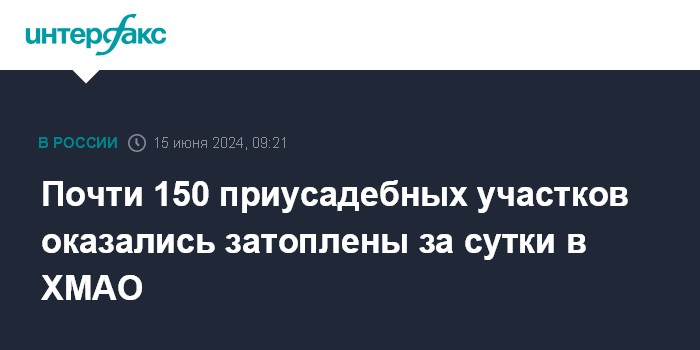 Москва. 15 июня. INTERFAX.RU - Число затопленных приусадебных участков в Ханты-Мансийском автономном округе достигло 562, говорится в сообщении ГУ МЧС РФ по региону.