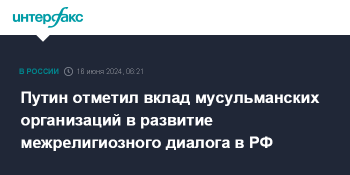 Путин отметил вклад мусульманских организаций в развитие межрелигиозного диалога в РФ