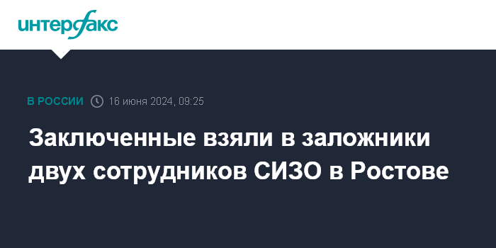 Москва. 16 июня. INTERFAX.RU - Заключенные следственного изолятора (СИЗО) в Ростове захватили в заложники двух надзирателей, ведутся переговоры, сообщили в региональном главке ФСИН.