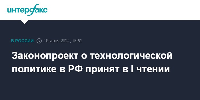 Москва. 18 июня. INTERFAX.RU - Госдума на заседании во вторник приняла в первом чтении законопроект "О технологической политике в РФ", который призван обеспечить цифровую автономию страны на основе отечественных технологий.