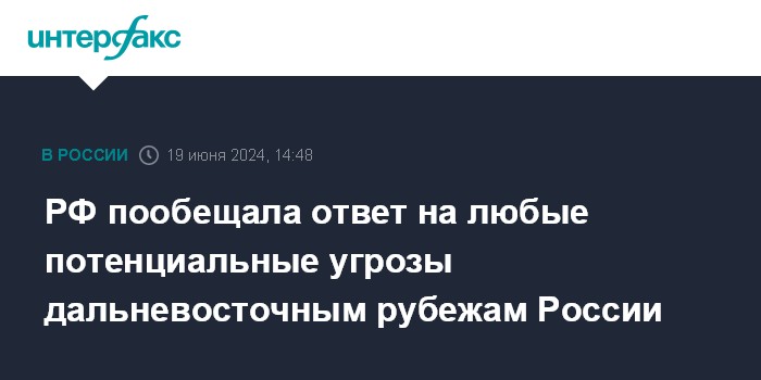 РФ пообещала ответ на любые потенциальные угрозы дальневосточным рубежам России