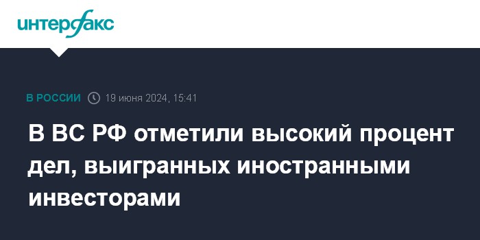 Москва. 19 июня. INTERFAX.RU - В Верховном суде России констатируют стабильно высокий процент дел, выигранных инвесторами, в том числе иностранными, а также рост их обращений в суды.