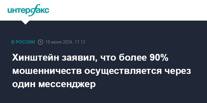 Хинштейн заявил, что более 90% мошенничеств осуществляется через один мессенджер