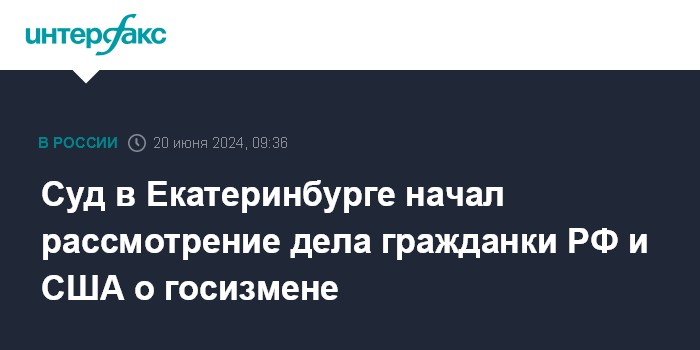 Суд в Екатеринбурге начал рассмотрение дела гражданки РФ и США о госизмене