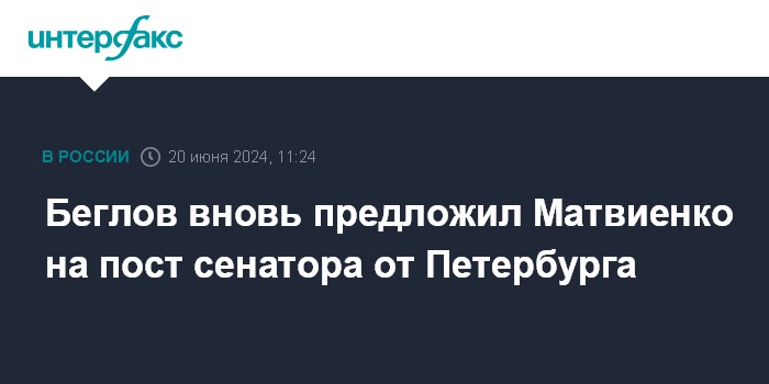В штабе кандидата "Интерфаксу" уточнили, что Беглов снова предложил действующего спикера Совета Федерации Валентину Матвиенко в качестве кандидатуры сенатора от Петербурга.