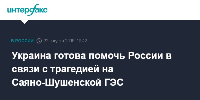 Украина готова помочь России в связи с трагедией на Саяно-Шушенской ГЭС