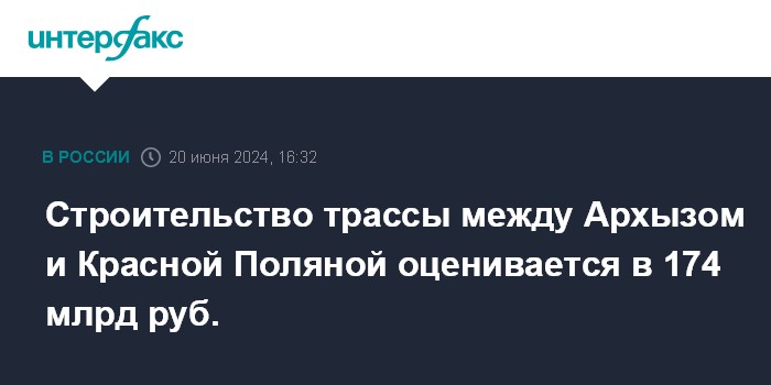 Москва. 20 июня. INTERFAX.RU - Автомобильная дорога между курортами "Архыз" в Карачаево-Черкесии и "Красная Поляна" в Краснодарском крае может быть построена за 173,9 млрд рублей, говорится в отчете о деятельности ГК "Автодор" за 2023 год.