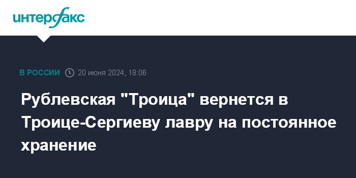 Рублевская "Троица" вернется в Троице-Сергиеву лавру на постоянное хранение