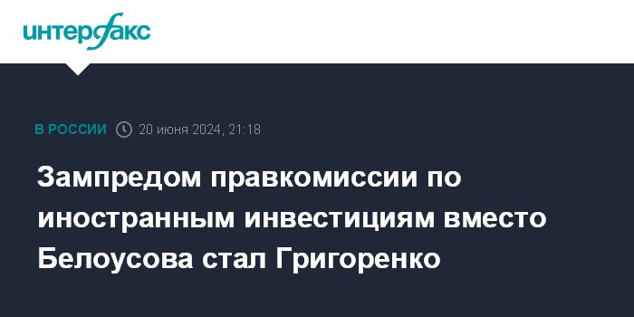 Зампредом правкомиссии по иностранным инвестициям вместо Белоусова стал Григоренко
