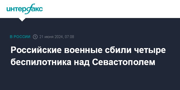 Москва. 21 июня. INTERFAX.RU - Губернатор Севастополя Михаил Развожаев сообщил в пятницу утром о четырех сбитых дронах над городом.