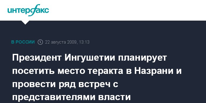 Москва. 22 августа. INTERFAX.RU - Президент Ингушетии Юнус-Бек Евкуров заявил журналистам в аэропорту Магаса, что планирует посетить ГОВД Назрани, где был совершен теракт, и изучить обстановку.