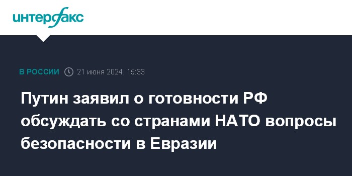Путин заявил о готовности РФ обсуждать со странами НАТО вопросы безопасности в Евразии