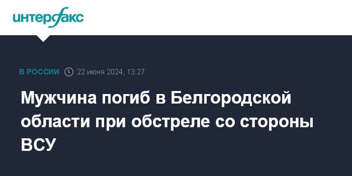 Мужчина погиб в Белгородской области при обстреле со стороны ВСУ