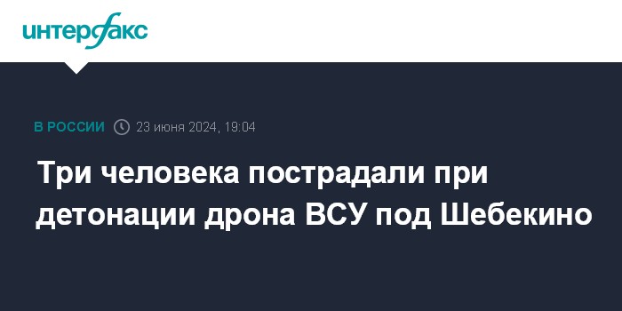 Москва. 23 июня. INTERFAX.RU - Губернатор Белгородской области Вячеслав Гладков сообщил о трех пострадавших мирных жителях при падении украинского дрона в Шебекинском городском округе.