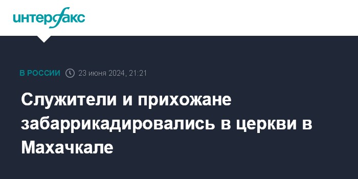 Москва. 23 июня. INTERFAX.RU - В махачкалинской церкви находятся люди, которые укрылись от боевиков, сообщили "Интерфаксу" в церкви.