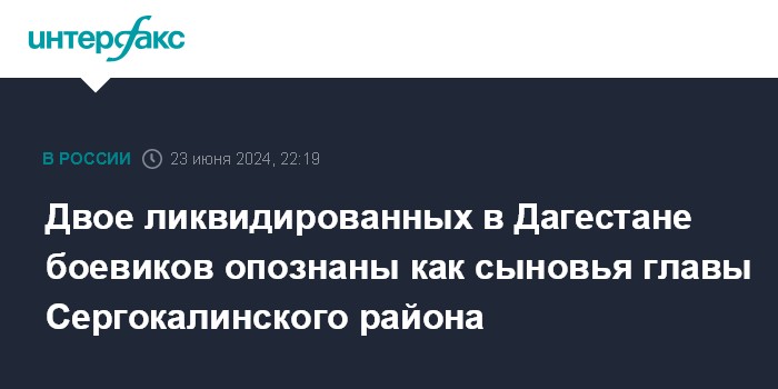 "Предварительно, уничтожено четверо боевиков. Троих опознали: как сыновей главы Сергокалинского района Дагестана и его племянника", - сказал собеседник агентства.
