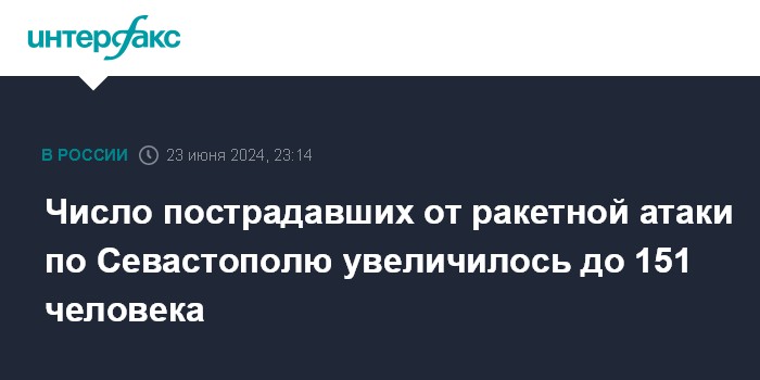 Москва. 23 июня. INTERFAX.RU - От ракетной атаки вооруженных сил Украины по Севастополю в воскресенье днем пострадал уже 151 человек, сообщил губернатор города Михаил Развожаев.
