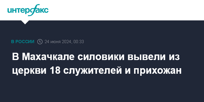 Москва. 24 июня. INTERFAX.RU - Силовики благополучно вывели служителей и прихожан из церкви в Махачкале, возле которой идет перестрелка между боевиками и полицейскими, сообщили "Интерфаксу" в храме.