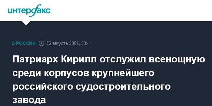 Патриарх Кирилл отслужил всенощную среди корпусов крупнейшего российского судостроительного завода