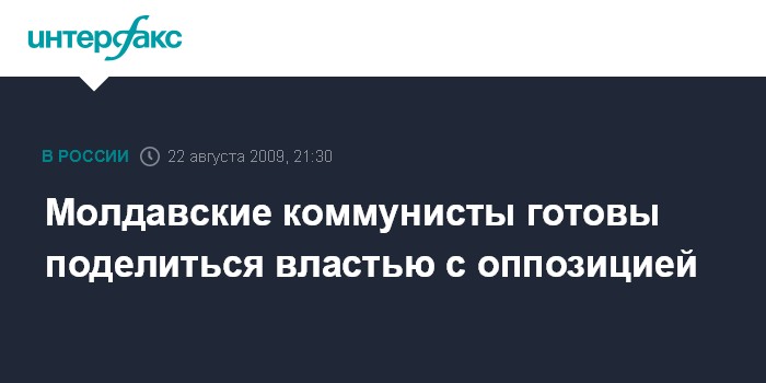 Кишинев. 22 августа. ИНТЕРФАКС - Партия коммунистов Молдавии (ПКРМ) готова договариваться с оппозицией о разделе власти, заявил член ЦК партии, бывший советник президента Владимира Воронина Марк Ткачук.