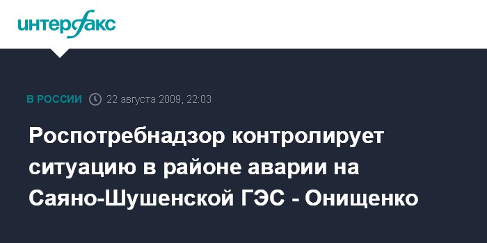 Роспотребнадзор контролирует ситуацию в районе аварии на Саяно-Шушенской ГЭС - Онищенко