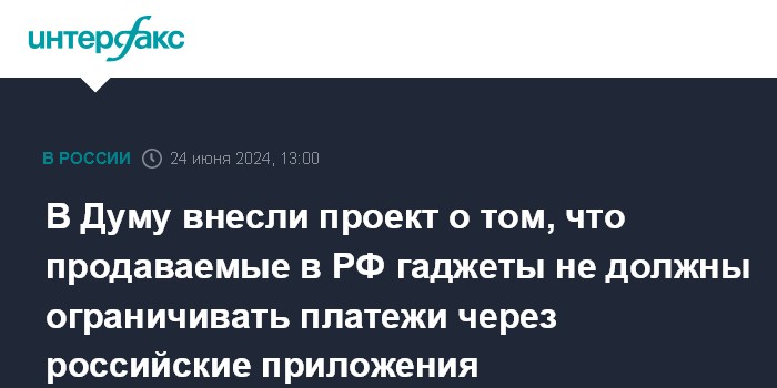 В Думу внесли проект о том, что продаваемые в РФ гаджеты не должны ограничивать платежи через российские приложения