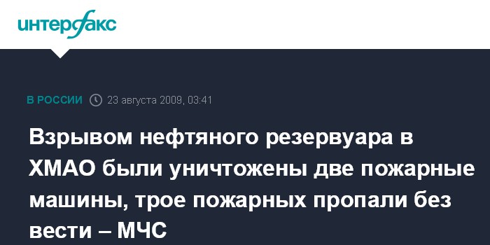 Екатеринбург. 23 августа. ИНТЕРФАКС-УРАЛ - При тушении пожара на нефтяных резервуарах в Ханты-Мансийском автономном округе пострадали пять сотрудников пожарной охраны МЧС РФ, еще трое пожарных пропали без вести.