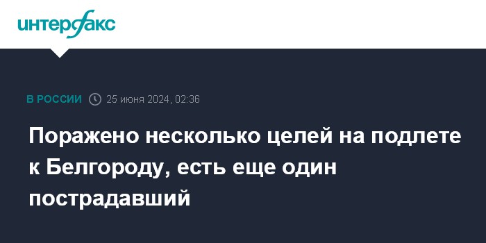 Москва. 25 июня. INTERFAX.RU - Губернатор Белгородской области Вячеслав Гладков сообщил об отражении средствами ПВО воздушной атаки на Белгород, в результате которой пострадал еще один мирный житель.