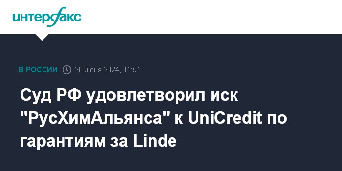 Суд РФ удовлетворил иск "РусХимАльянса" к UniCredit по гарантиям за Linde