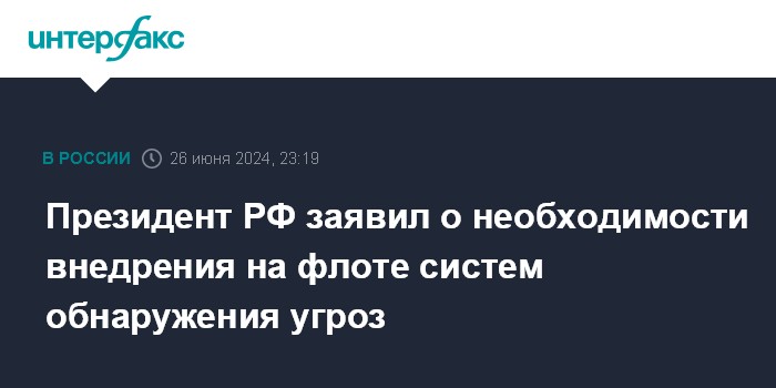Москва. 26 июня. INTERFAX.RU - Президент России Владимир Путин поручил уделить особое внимание скорейшему внедрению на флоте систем дистанционного обнаружения угроз, в том числе - со стороны беспилотников.