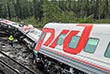 В РЖД назвали предварительной причиной схода вагонов подмыв полотна из-за обильных осадков.