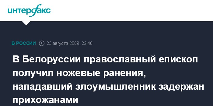 В Белоруссии православный епископ получил ножевые ранения, нападавший злоумышленник задержан прихожанами