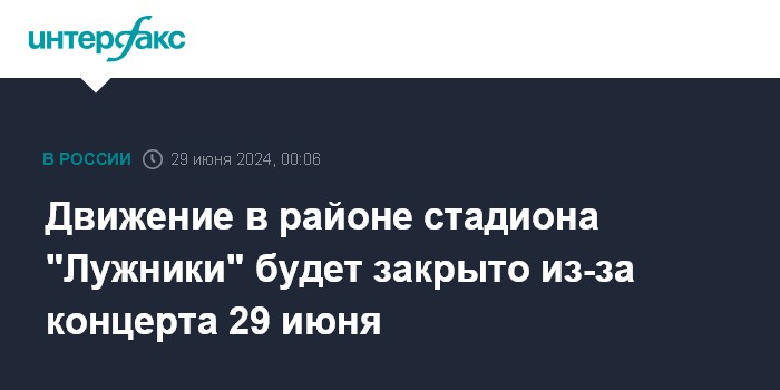 Движение в районе стадиона "Лужники" будет закрыто из-за концерта 29 июня