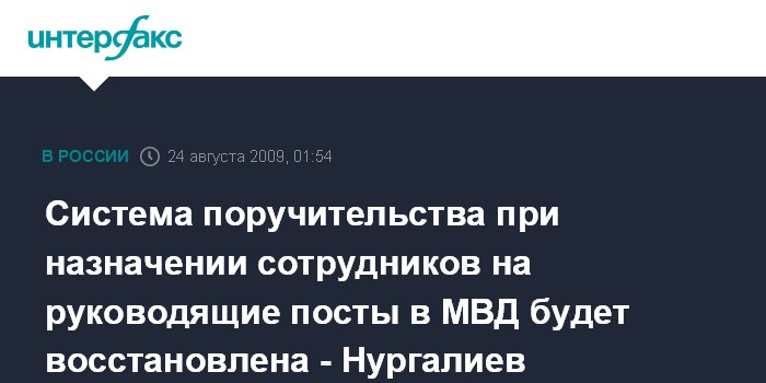 Елабуга. 24 августа. ИНТЕРФАКС - В системе министерства внутренних дел РФ при назначении сотрудников на руководящие должности будет возрожден институт личного поручительства, заявил глава МВД Рашид Нургалиев.