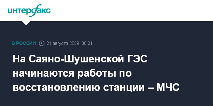 На Саяно-Шушенской ГЭС начинаются работы по восстановлению станции – МЧС